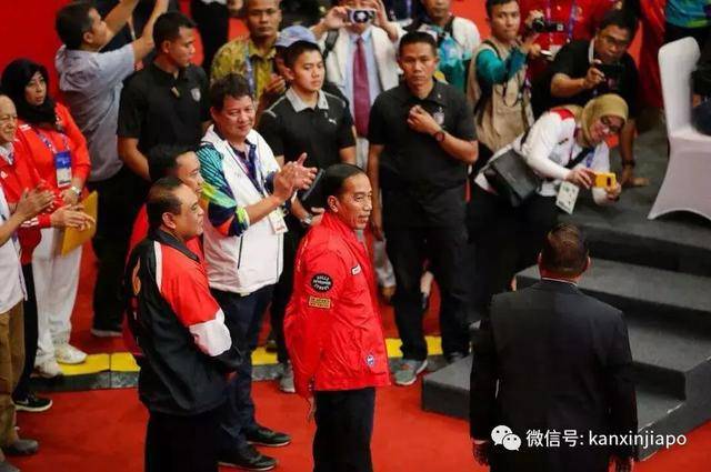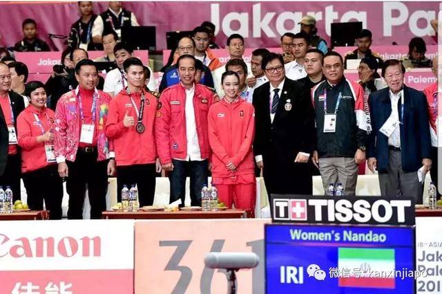 而在今天上午,印尼总统佐科在比赛场接见了印尼国家武术队雅加达亚运会金牌、银牌获得者,并与他们合影留念。