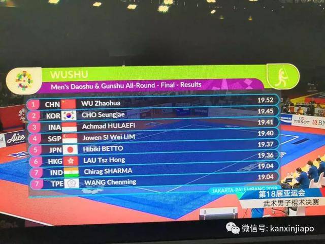 很可惜的是,在男子刀术/棍术的比赛中,新加坡以微弱的劣势输给了印度尼西亚,获得第四名,无缘奖牌。(就差0.01呀!!!)