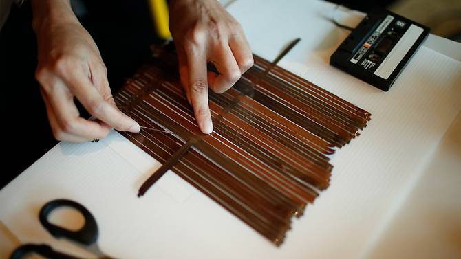 舍不得把旧卡带丢掉的庄逸馨,于是想到或许可以把旧卡带的磁带抽出来做成“音乐面料”。