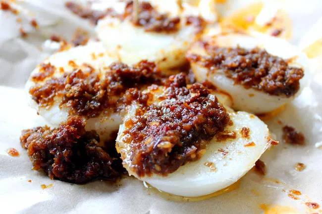 健柏水粿的萝卜酱咸中带甜、Rojak里有现烤的鱿鱼片。