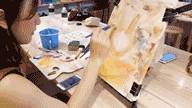 工作人员告诉我们,客人来是需要自己决定想画什么,有一个手机支架可以放置手机。也没有老师指导。