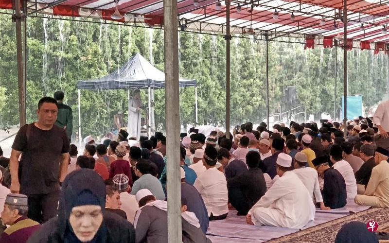 尽管滂沱大雨,1000多名回教徒顺利在与两个中元会共享的帆布帐篷中完成哈芝节祈祷仪式,凸显了宗教和谐的可贵。(穆仁理提供)