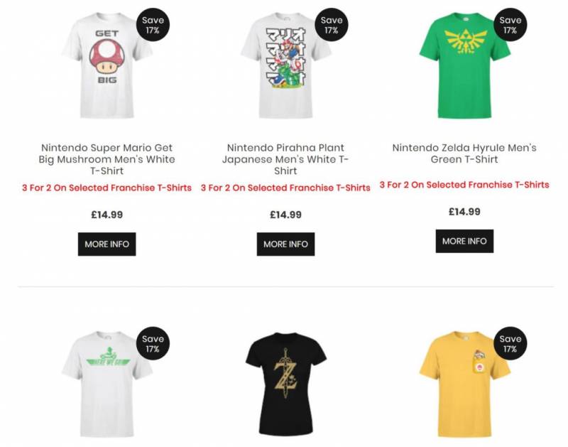 1. IWOOT Nintendo 任天堂游戏主题T恤 3件£30