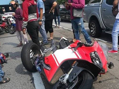 他是在前天(22日)骑着一辆新加坡注册的摩哆在吉隆坡一带发生车祸。根据一名网友在面子书上贴出的车祸现场照片,死者红白颜色的摩哆车祸后倒在路肩上,右手柄和右侧镜脱落,后轮也撞飞脱,可见事发时的撞击力非常大,骑士当场身亡。
