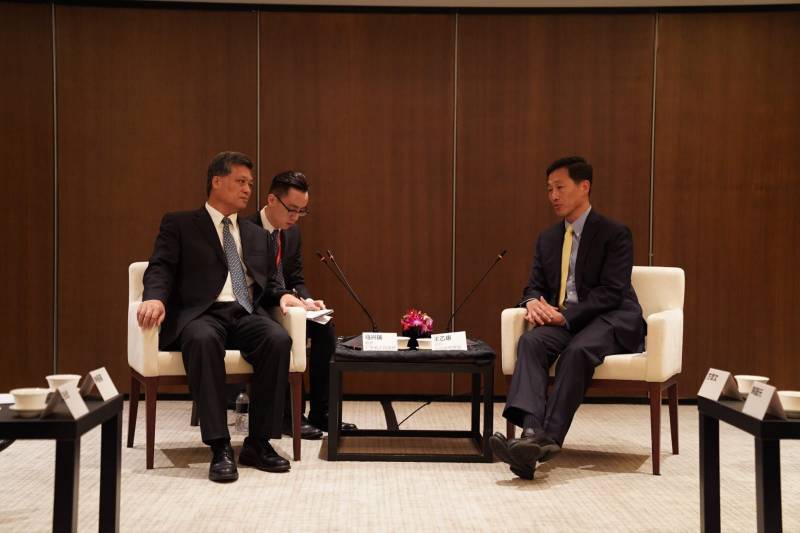 我国教育部长王乙康和广东省长马兴瑞。(照片:Enterprise Singapore)