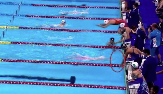 而通过慢镜头回放,中国队的确存在抢跳犯规,在第二棒和第三棒交接时张雨霏抢跳犯规了。