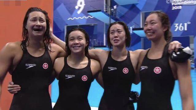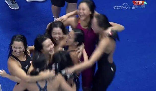 中韩接力成绩都被取消,香港新加坡两队相拥庆祝