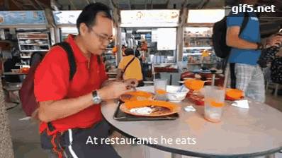 在外面用餐,他会去食阁吃别人没有吃完的饭菜。