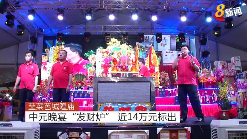 韭菜芭城隍庙:中元晚宴“发财炉” 近14万元标出