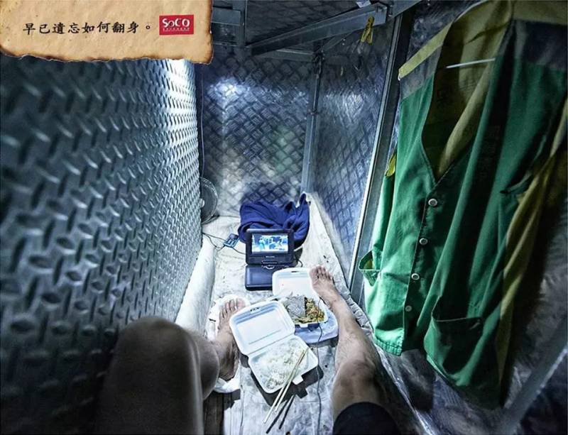 位置十分狭小,以至于进到房间后只能直挺挺地躺着,就像躺在棺材里一样。