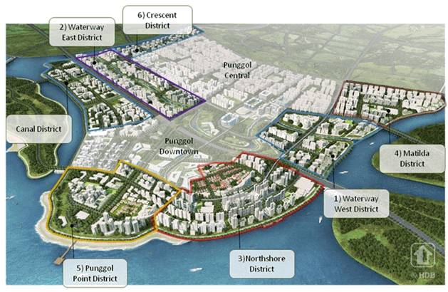 榜鹅市镇被规划为11区,其中七个为濒水区。建屋局自2010来已陆续在其中三个濒水区推出31个预购组屋项目,