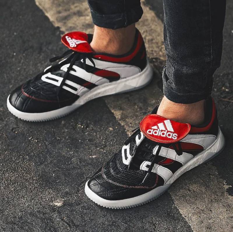 adidas于2018年夏季推出了贝克汉姆的代表鞋款黑红色猎鹰4以及其Boost版本的训练鞋