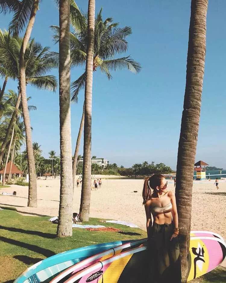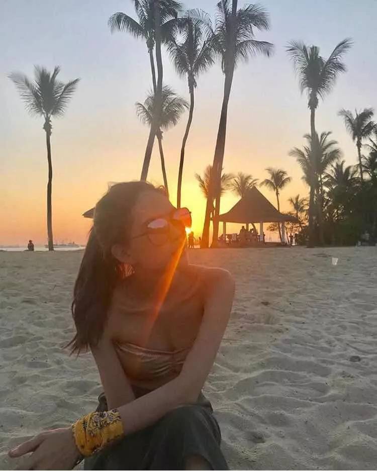 昨天,昆凌在ins上发了一组圣淘沙海边relax的美照,照片中的她身着金色抹胸,秀出完美身材。