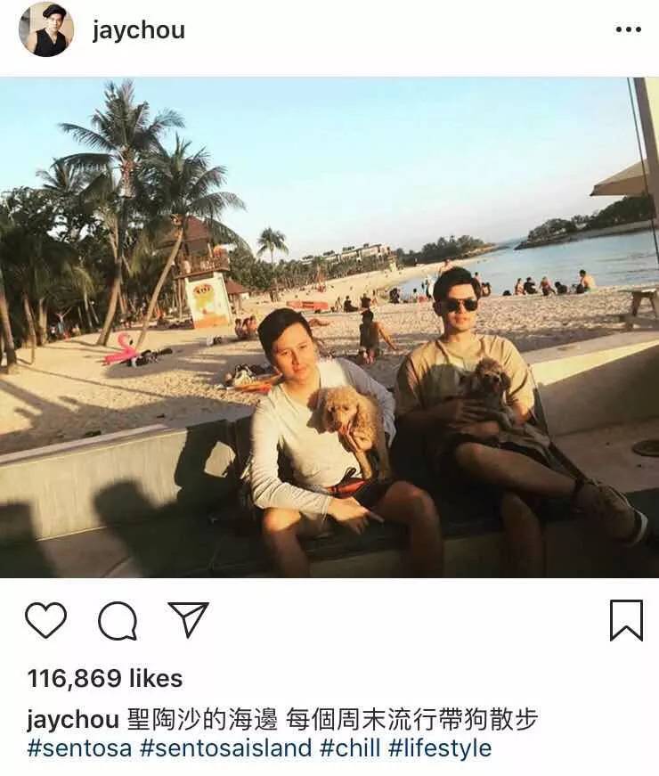 就在网友都深感疑惑,纷纷猜测时,周董在ins上也发出了一张图片,不过他并没有和昆凌合照,而是和一位男性友人携爱犬沐浴阳光。