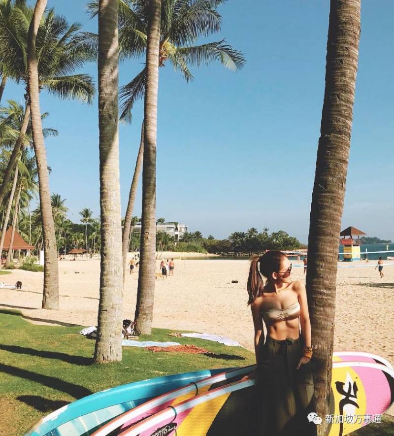 而妻子昆凌也在网上大方晒出自己在圣淘沙海滩游玩的照片。