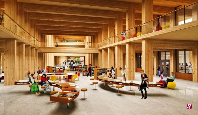 南大说,这座六层楼高的学术楼将是亚洲最大规模的木制建筑,采用层压胶合实木(Mass Engineered Timber)建筑科技建造。苏雷什指出,南大致力于成为顶尖的“绿色”校园,95%建筑已符合“绿色建筑标志白金”认证,新学术楼也因此强调环境可持续性的设计。
