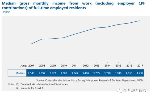 这个数字包括了雇主公积金在内,不是平均数而是中位数,去年的月薪中位数是4056新元,今年增加了4.3%。实际收入也增长3.7%,高于2016年6月的3.3%。