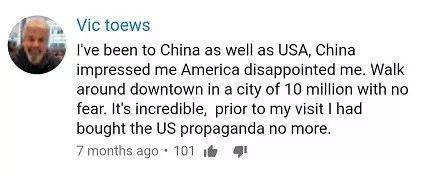 “好地方,中国的城市和纽约看起来没有什么区别,很惊艳。中国现在已经相当的文明,比隔壁邻居印度要好。”
