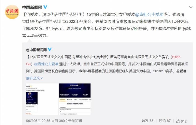 自由式滑雪选手谷爱凌(Eillen Gu)