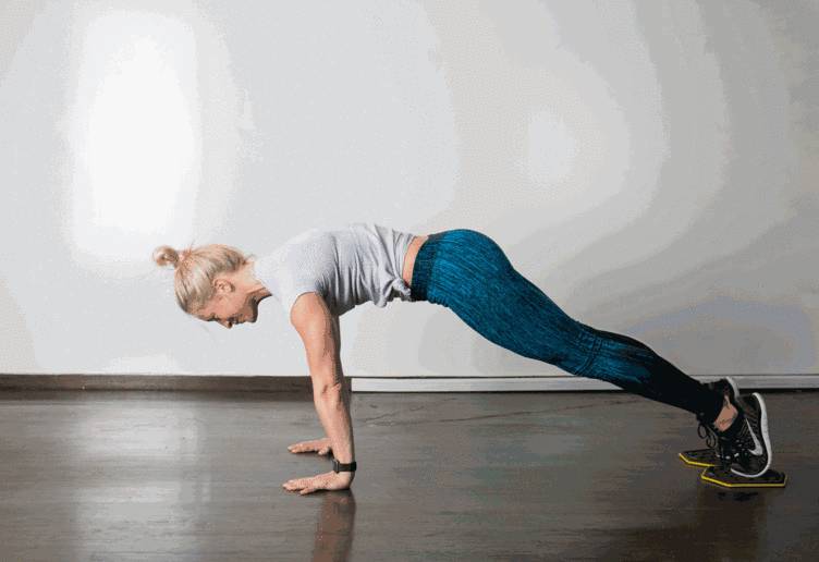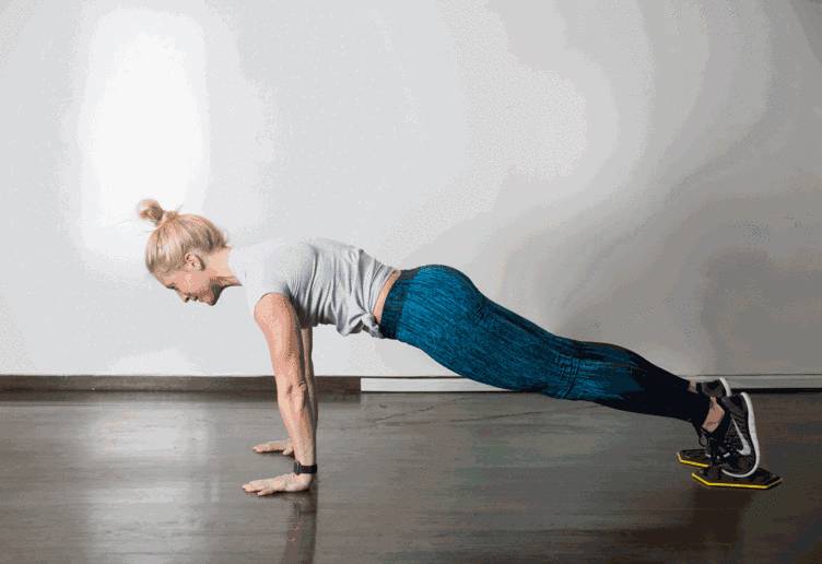 脚下垫一块抹布(越滑越好),收腹,屈髋,带动抹布滑动,使身体呈倒“V”,15-20个为一组。