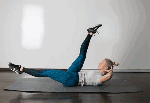 手臂伸直,用腹肌卷动使身体抬离地面,而不是靠迅速的摆臂荡悠起来,回躺时,应有所控制,身体呈卷曲态,由下腹至上腹逐渐由紧张到放松,而不是直挺挺的倒下。10-12个为一组。