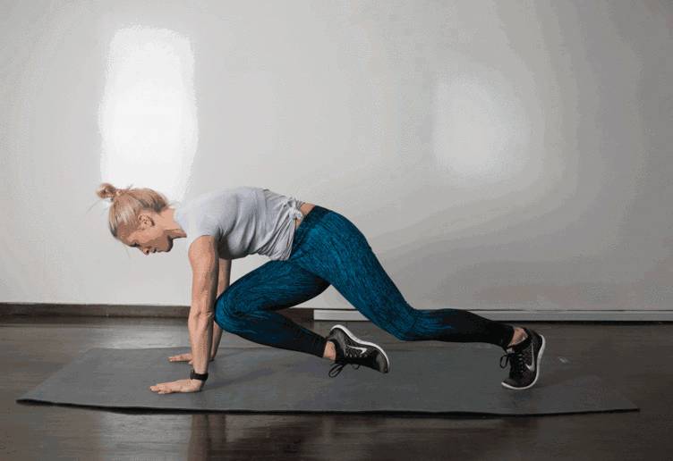 双手稳定支撑,收腿时膝盖指向对侧手肘。每侧各15-20下为一组。