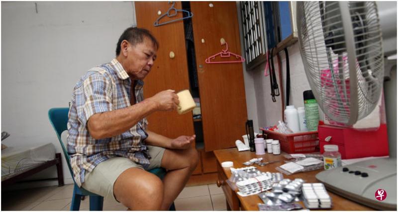 住在马西林一带的独居阿伯余培来,二三十年前就患糖尿病,当过德士司机和送货员。2011年,他轻微中风,之后就没有工作。