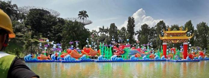其中“鱼跃龙门”将是滨海湾花园历来最巨型的灯笼,将摆放在园内的蜻蜓湖上。