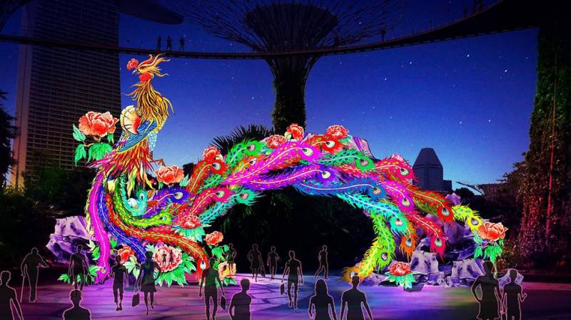 其他巨型灯笼还包括擎天树林(Supretree Grove)下展示的 “凤凰戏牡丹”,象征如意幸福。此外,活动还会展现126盏海洋动物设计的”海底世界“灯笼,以及一条点缀著灯笼的走道,总长100多米。