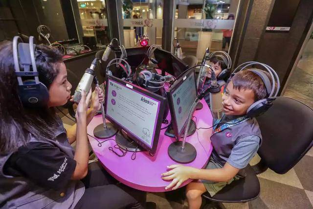 孩童也能在新加坡报业控股旗下的英语电台UFM Kiss92设立的播音室体验当DJ。