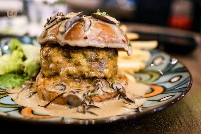 还试了一款他们家的主食——Drenched Mushroom Burger,牛肉很嫩,这里有我最喜欢的芝士,回想都要流口水。