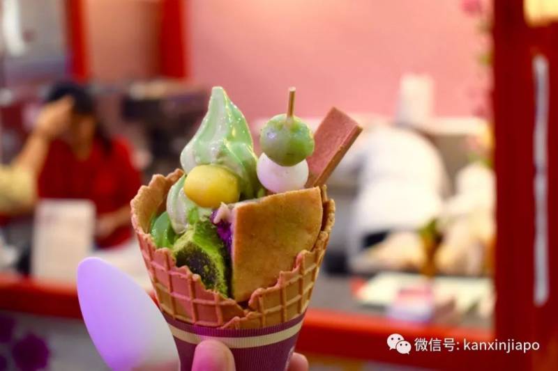 来自京都的抹茶冰淇淋,有满满“宝藏”,脆筒中有糯米制作的串串、松软的抹茶蛋糕、栗子饼等。混合著浓郁的抹茶口味,配料味道也变得与众不同。
