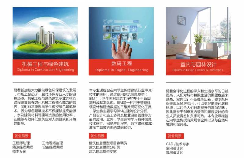 机械工程与绿色建筑 | 数码工程 | 室内与园林设计