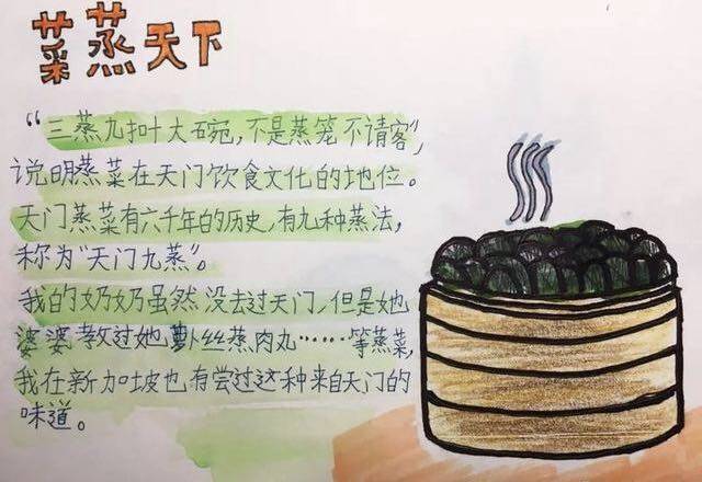 该绘本共有10张手绘图,手绘包括天门南站、“菜蒸天下”蒸笼、胡家花园等地标,还涉及了侨乡历史、天门蒸菜等文化因素。