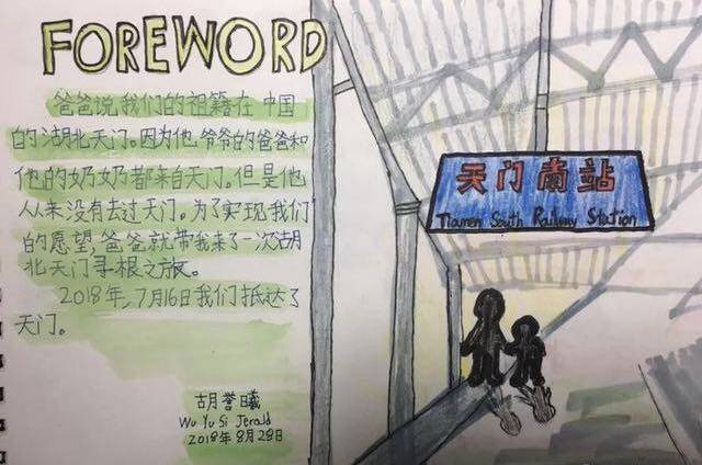 新加坡华裔小男孩随父母回天门寻根,手绘“画说天门”