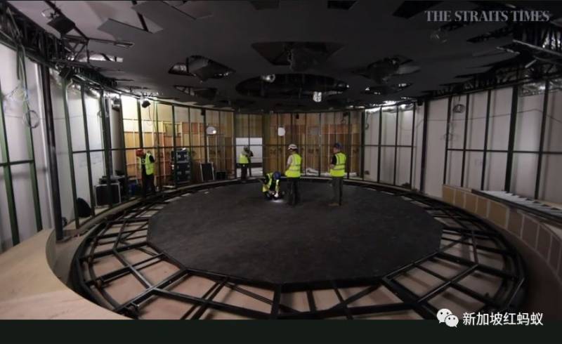 为纪念展设计的滚动舞台。(海峡时报视频截图)