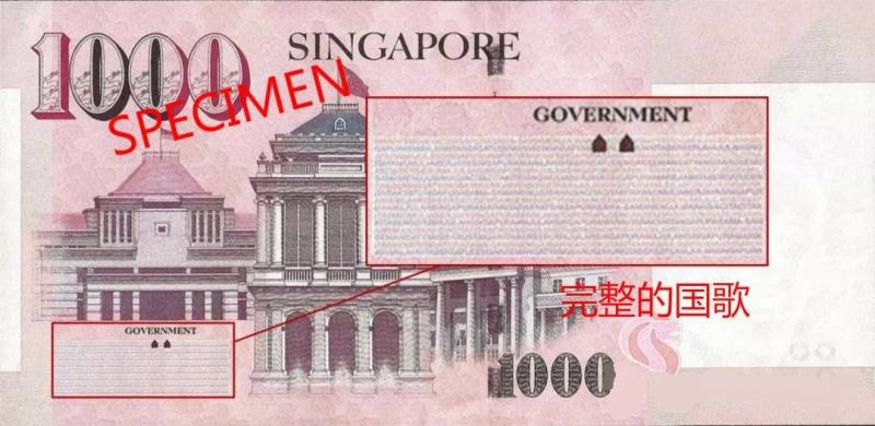 新加坡S$1000元纸币的背面居然印有新加坡的国歌,具体的位置是在government单词的下方空白处,不信的话可以掏出来看看哦。