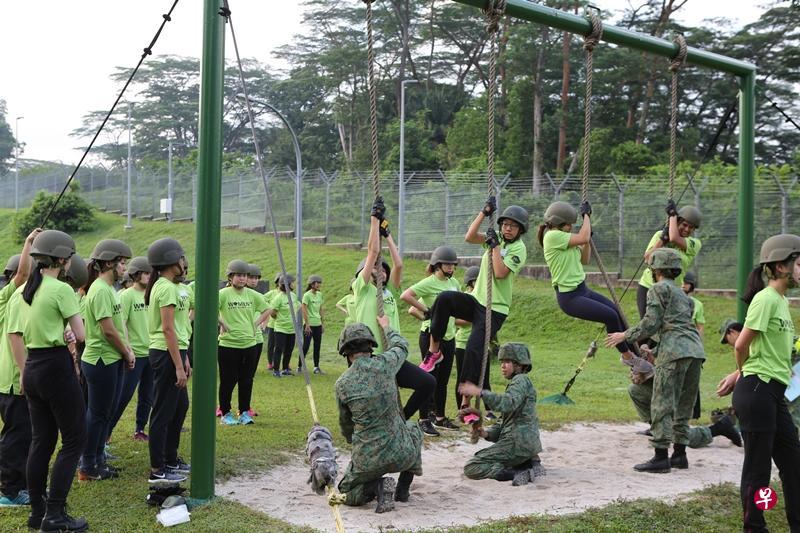 这群“娘子军”的军训项目包括,SAR 21冲锋枪培训、军事障碍挑战场训练、行军体验,以及伤者解救训练。参与者也在军营房中住宿一晚,感受原汁原味的服役生活。