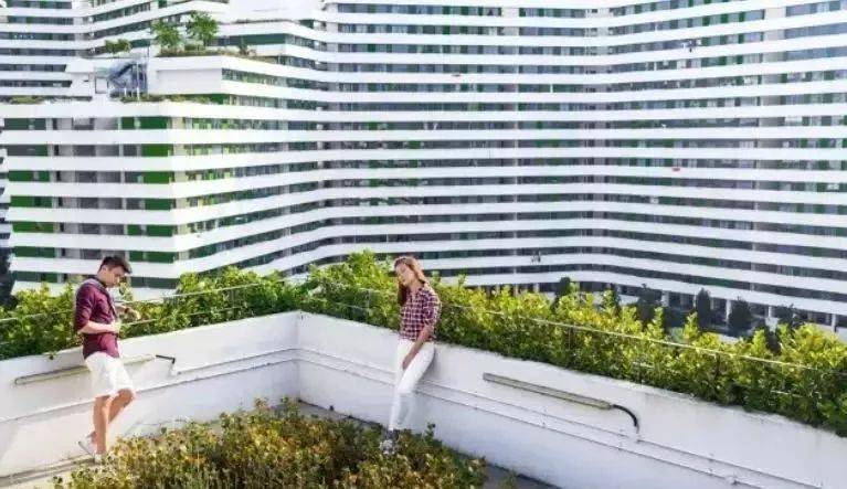 瀑布式的屋顶花园,出门就是沁人心脾的美景,自然沉浸式的居住体验。这不是公寓,是组屋!