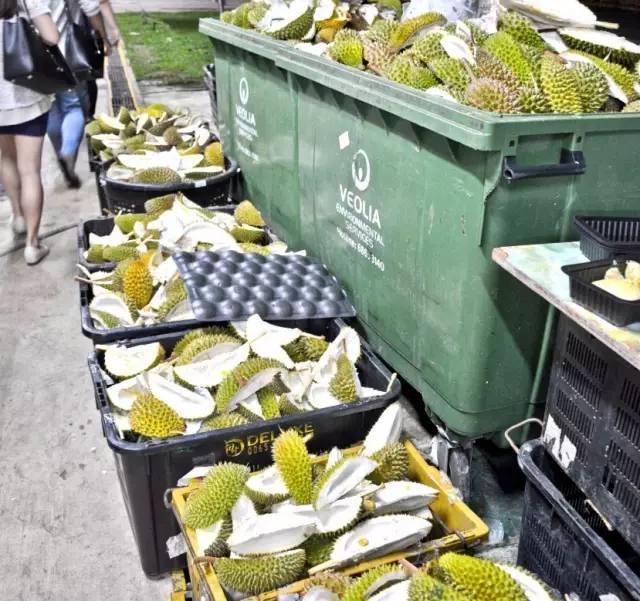 新加坡西部最受欢迎的榴梿摊!反正你就是做好排队的准备就对了,不仅可以打包带走,还可以在店里吃!要想吃到最棒的榴梿,最好提前1-2天预约,你看看下面这些丢掉的榴梿壳,就知道大家有多么的疯狂!