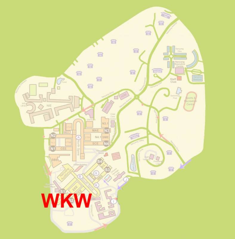 WKWSCI位于South Spine西南方向,毗邻大EEE。乘坐Campus Line, Campus Weekend Rider,以及179都可到达。