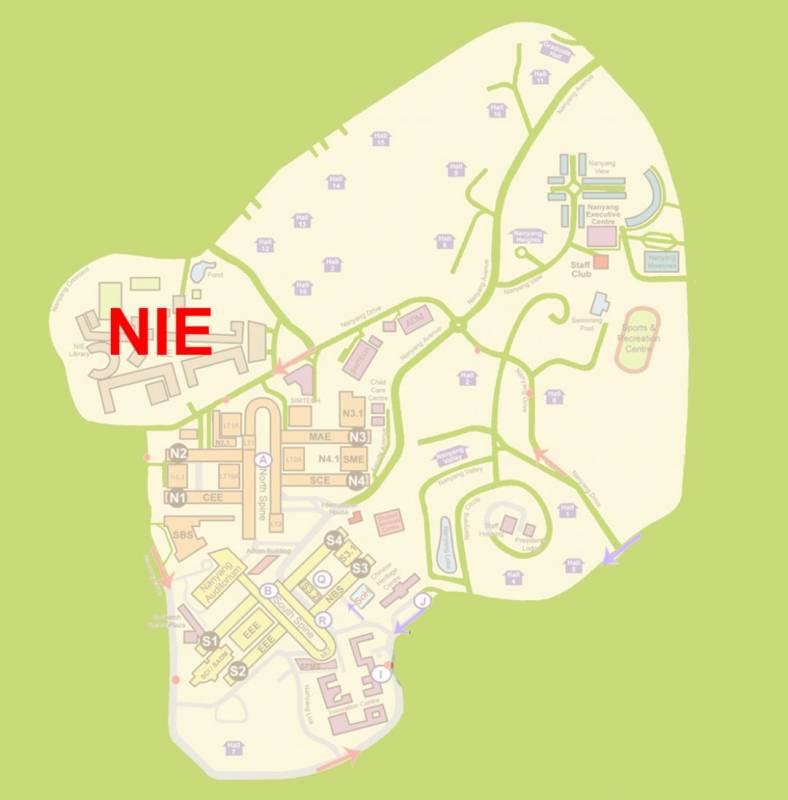 NIE位于North Spine北侧,占地庞大,乘坐校园环线,Campus Weekend Rider, 179以及199都可以到达。