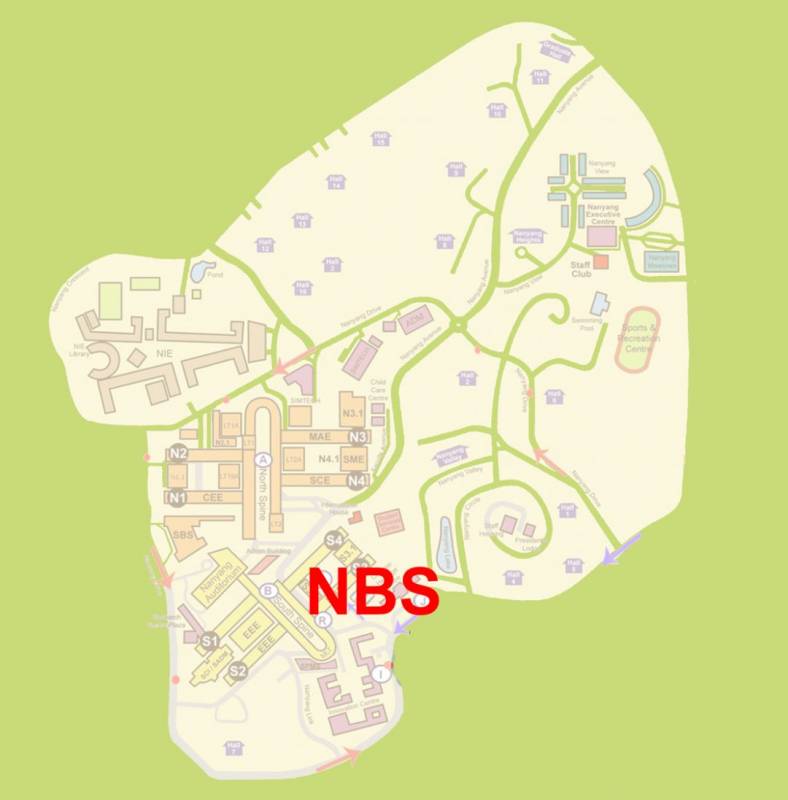 NBS坐落在主教学楼的South Spine, 毗邻南大地标小笼包。乘坐Campus Line, Campus Weekend Rider, 以及179都可到达。