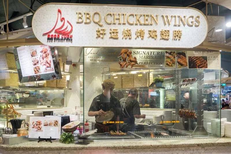 这是一家在东海岸人工湖美食村开了有40年的清真沙嗲档口,专门卖沙嗲和烤鸡翅膀,现在由女儿接手管理。