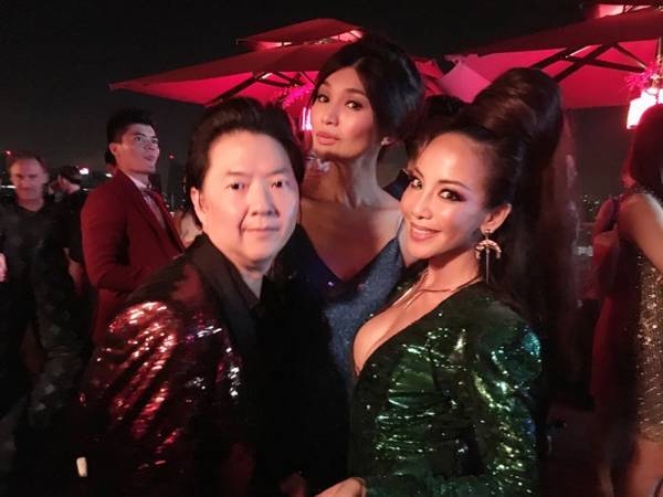 谢宛谕(右)与美籍韩裔演员郑康祖(Ken Jeong,左)及英籍华裔陈静(Gemma Chan,中)合照。(图片:谢宛谕提供)