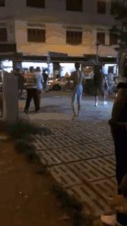 在马路上引起一番骚乱后,他“看中”另一名男子,便向他冲去!