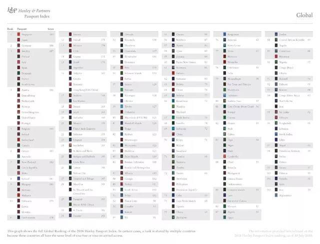 根据最新发布的护照指数榜单显示,新加坡以189个免签国登顶,荣获2018年护照含金量全球第一。