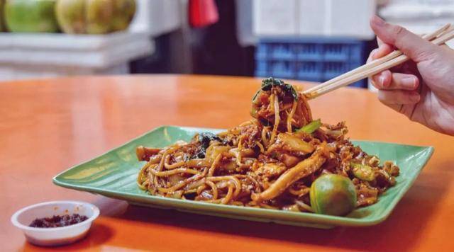 炒粿条,其实是来自马来西亚槟城潮州人的美食,以酱油和黑酱油为主要酱料,加上叁巴辣椒酱,咸甜中带点微辣,他家粿条很正宗,还有添加黄面增加口感。