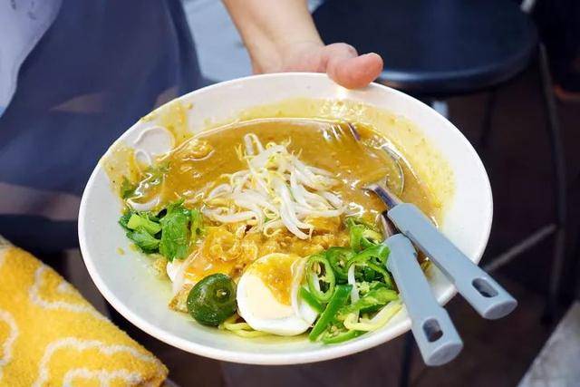 米其林推荐小吃,浓醇的咖喱汤底咸鲜微辣,泡在里面的豆腐条,很多汁很入味。鱼饼、豆芽、鸡肉,配料十分丰盛。主食可以选粗粉、细粉或面条。