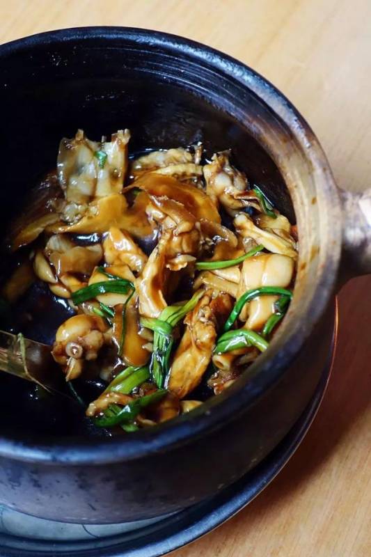 田鸡粥,其实是田鸡和白粥;砂锅煲的稠稠的粥,粥米糊糊的厚厚的,撒一丢丢胡椒粉和葱花,上桌的时候还咕噜咕噜沸腾著;搭配酱汁浓郁的大只田鸡,肉质饱满,酱汁咸鲜美味,拌粥绝了。最经典的要数葱姜田鸡和宫保田鸡。